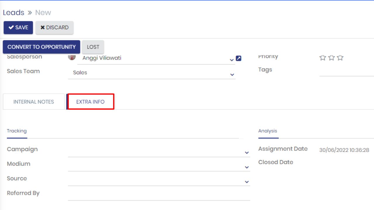 4. Pada halaman Leads seperti contoh gambar berikut ini, silahkan klik “Extra Info”