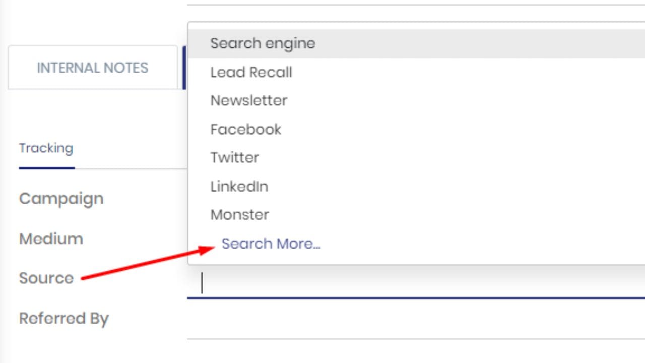 5. Kemudian di bagian “Tracking” jika source yang dibutuhkan tidak ada opsinya, klik “Search More”